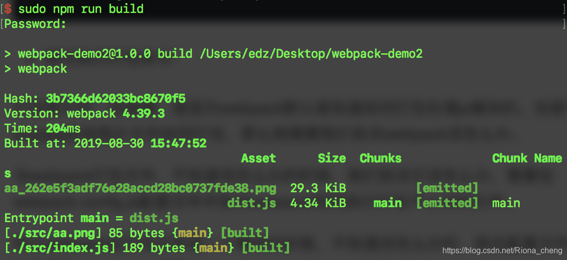 接下来执行打包语句:(使用npm scripts方式打包,配置为build,具体配置看"webpack学习篇2")