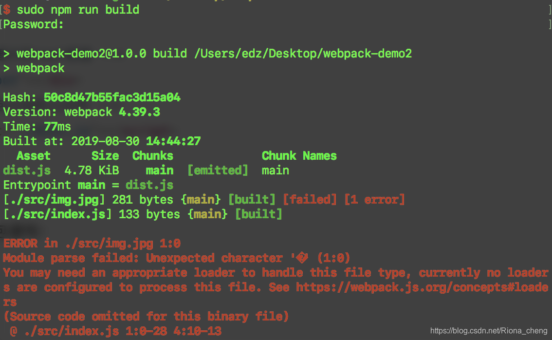 会发现命令行报错,并提示需要使用合适的loader来打包它。通过这个小例子,让我们知道,当我们打包图片文件时,webpack并不能像识别js一样识别它,需要我们借助额外的工具来告诉webpack如何打包它,所以,就需要我们安装loader, 配置loader打包规则:(步骤如下)