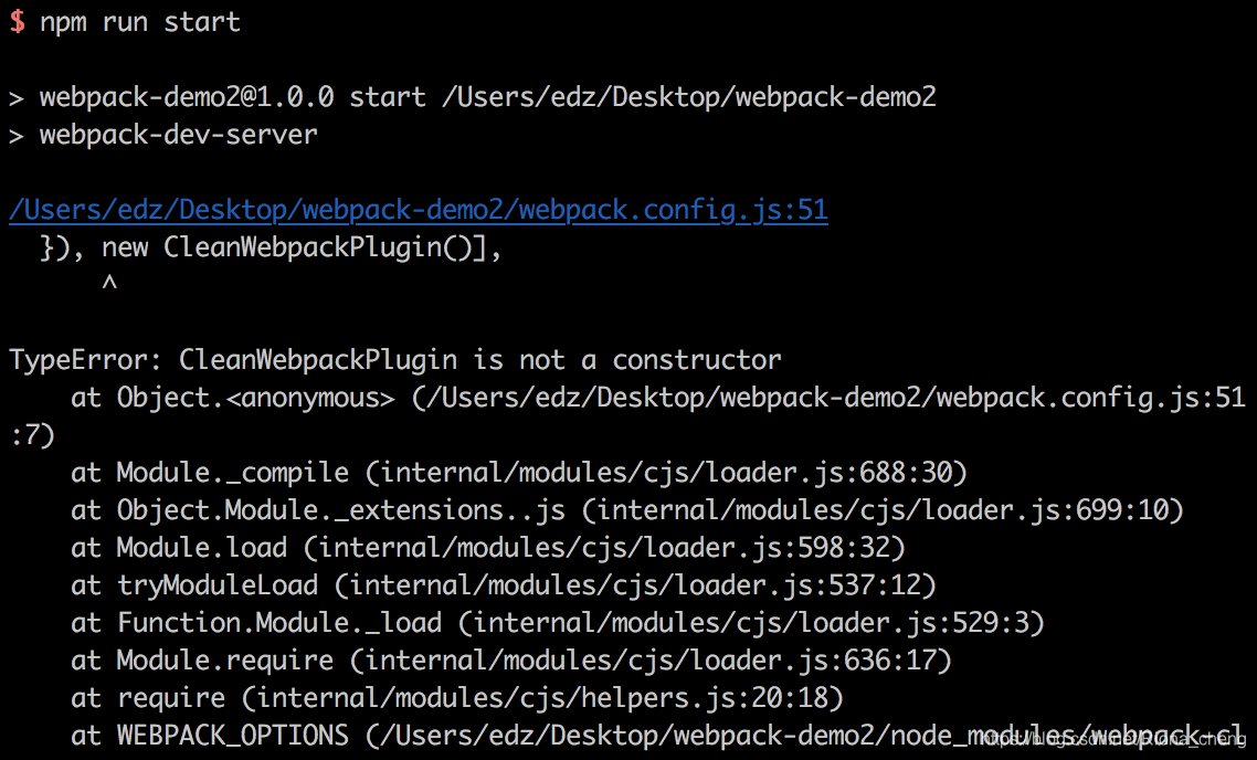 在使用clean-webpack-plugin插件时,遇到TypeError: CleanWebpackPlugin is not a constructor报错,如下图: