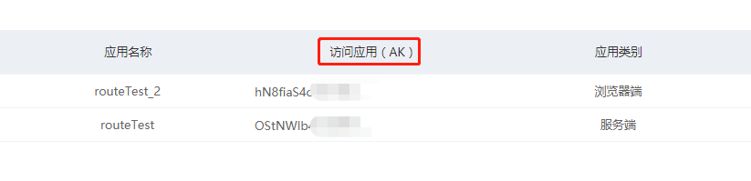 创建完成后我们会得到这样一个应用的AK,就是访问密钥: