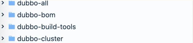 建议项目文件夹名称使用串式命名法(kebab-case),比如 dubbo 项目的各个模块的命名是下面这样的: