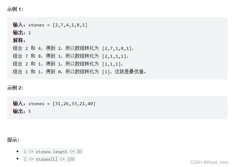 - 有一堆石头,用整数数组 stones 表示。其中 stones[i] 表示第 i 块石头的重量。