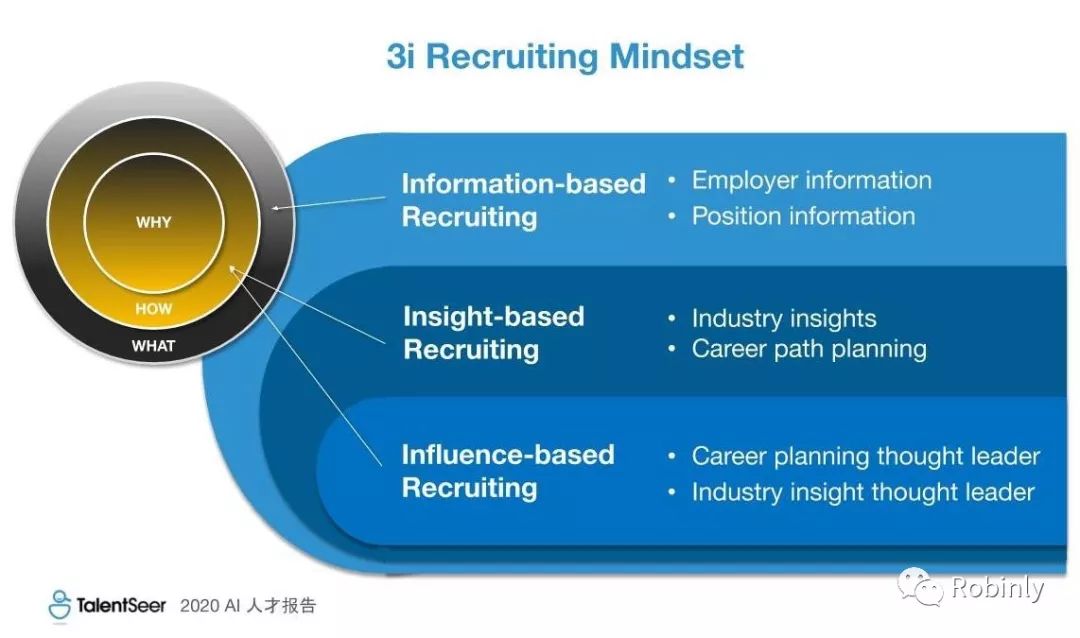 行业格局的转变使得人才招聘变得更具挑战性和战略性。传统信息轰炸式的人才招聘方式已无法在严峻的竞争中有效吸引AI人才。TalentSeer 和 Robin.ly 的创始人、 AI 投资者 Alex Ren 提出了一种创新的 “3i 招聘思维方式”,并在硅谷上百个人工智能岗位的招聘中证明了其有效性。这种方法建议在为候选人提供职位和公司信息之外,从产业生态、技术演进、商业模式等方面提供更多的行业观点和职场发展建议,帮助候选人全面考虑个人发展和雇主定位,作出最优决策。同时雇主和人才管理者应将深度行业和职业观点通过社交网络和线上线下活动等方式广泛传播,树立权威影响力。