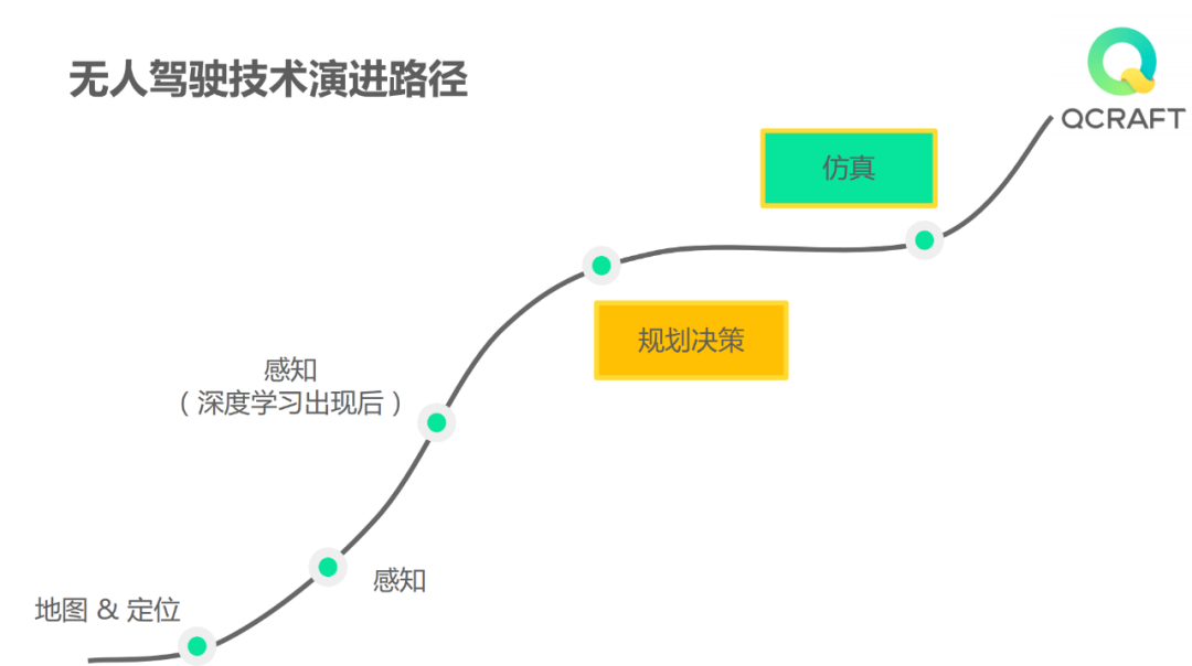 这一条技术演进路径,既是我在自动驾驶领域10多年经验的一个总结,是不同时间点自动驾驶技术所专注的不同核心,也是近几年来许多创业公司从无到有的技术构建过程——先做好建图和定位,再做好感知,最后再开始做规划决策和仿真。