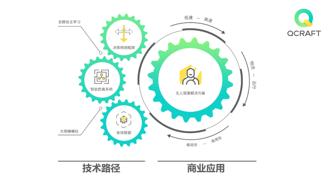 在技术路径方面,轻舟智航重视自动化和测试。有效数据、大规模智能仿真系统以及可自主学习决策规划框架是推动轻舟智航技术不断向前转动的齿轮,也是我们独特的技术路径。在过去一年的起步阶段,轻舟智航不希望“只见树木不见森林”——通过见招拆招的方式进入到某个具体的小应用场景,变成一家靠堆人来解决问题、无法规模化的工程公司,而是专注于修炼内功,在做到主线够深入、横向可扩展之后,再以轻、快的方式实现真正的无人驾驶。