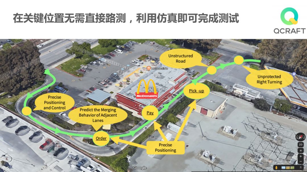 首先,其车道比单车道更窄,对定位和控制的要求都比较高,如果横向定位和控制不精确,就会轧到路沿或蹭到建筑物,如果纵向不准,就会对不准点餐窗口。