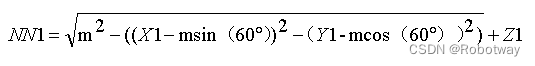 在图中有几个可以通过测量得到已知值,分别是连杆长度NQ/N1Q1、NT的距离、终点Q1点的坐标;假设我们输入的量是终点Q1的坐标(X1,Y1,Z1);这里需要注意的是Z1坐标为负值,为了方便理解在后面的推导中我们都对Z1取绝对值。