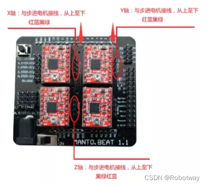 各轴步进电机与SH-ST步进电机扩展板的接线顺序如下(从上至下):