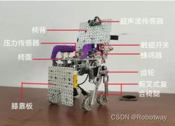 矫正机构主要由椅面两侧齿轮传动搭载剪叉式复合椅腿构成,如下图所示。该设计结合