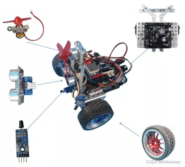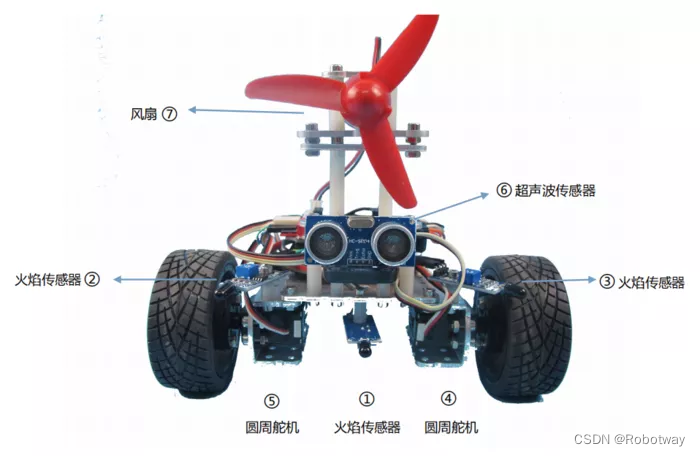本文示例将实现当小型双轮差速底盘机器人检测到火源时进行灭火的一个功能。