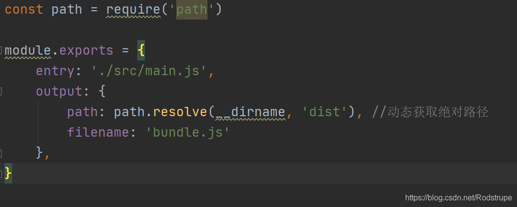 webpack.config.js(名字固定):入口——./src/main.js,出口——需要动态获取绝对路径,依赖node语法中的path包,接下来安装包