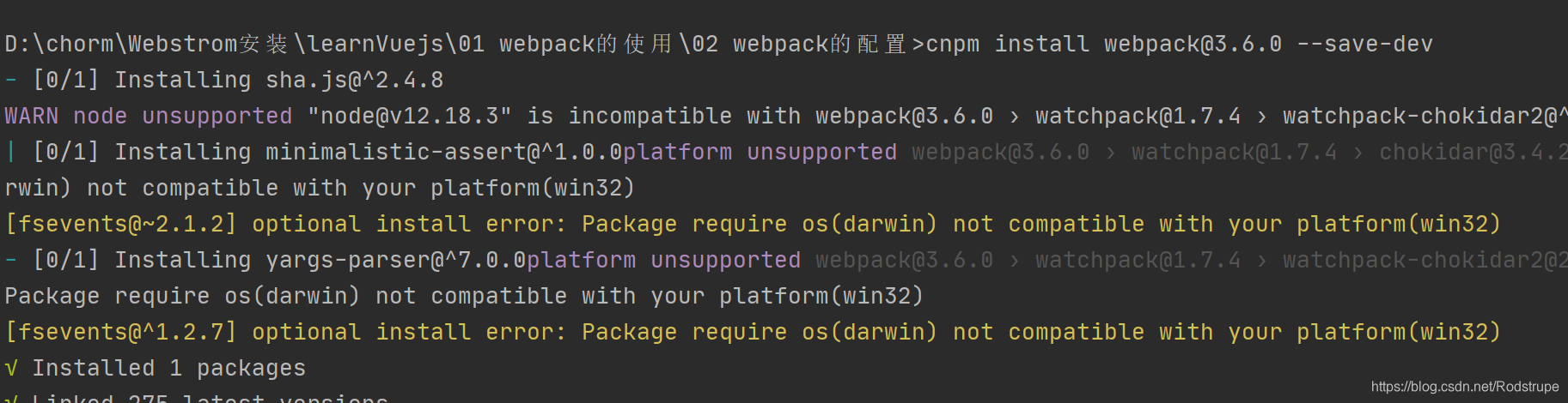 安装本地webpack:cnpm install webpack@3.6.0 --save-dev,新增包:node_modules library root,里面有本地webpack
