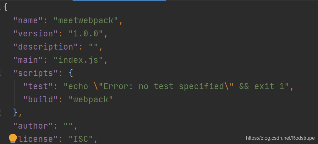 打包命令,用npm run build映射webpack,找到package.json中的脚本scripts,新建脚本build后,再执行npm run build,此时优先在本地找webpack,需要在本地安装webpack(开发时依赖)