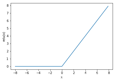 ReLU(rectified linear unit)函数提供了一个很简单的非线性变换。给定元素xxx,该函数定义为