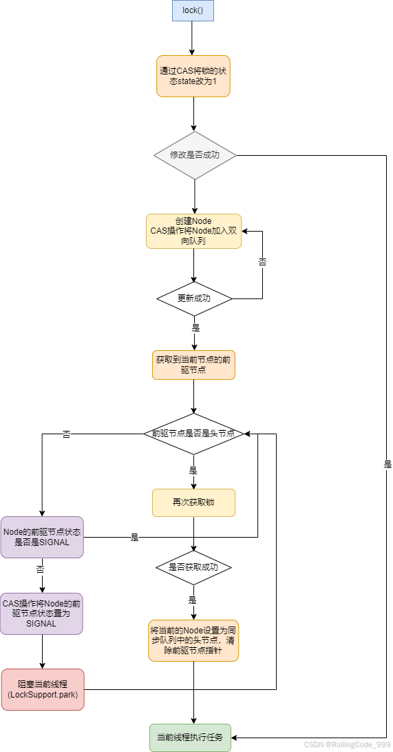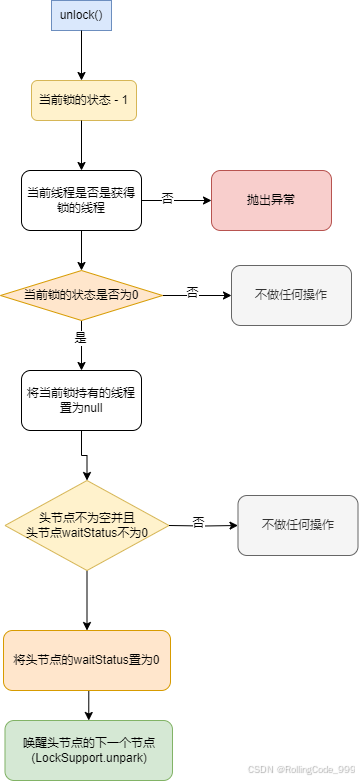 unlock()释放锁的流程: 如果是同一个线程多次调用的方法中都去获取了锁,是可以允许的。在释放锁时,调用了多少次就要释放多少次,当锁的状态变为0之后,就会唤醒同步队列中的线程去竞争锁