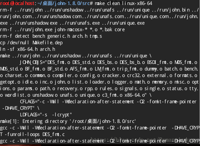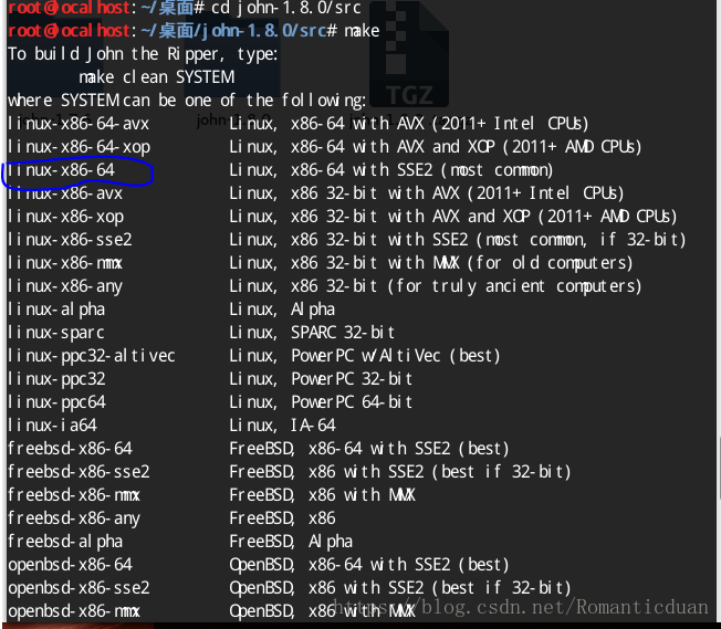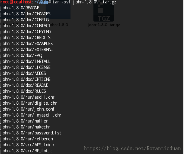 解压:tar -xvf john-1.8.0.tar.gz
