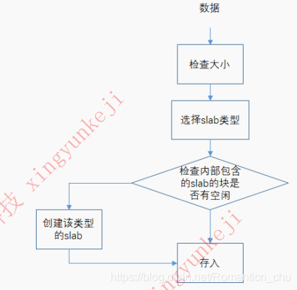 memcache使用一种叫Slab的结构。在该分配算法中,内存将按照1MB的大小划分为页,而该页内存则会继续被分割为一系列具有相同大小的内存块。