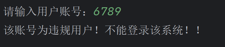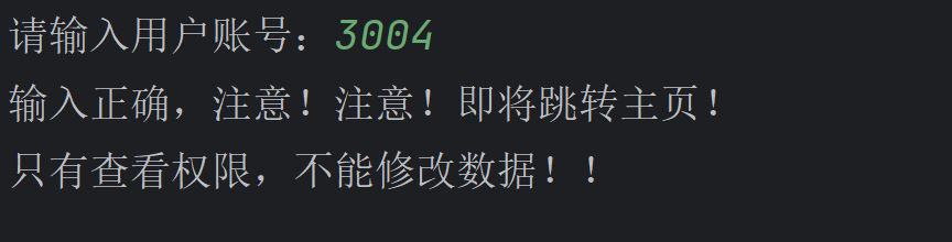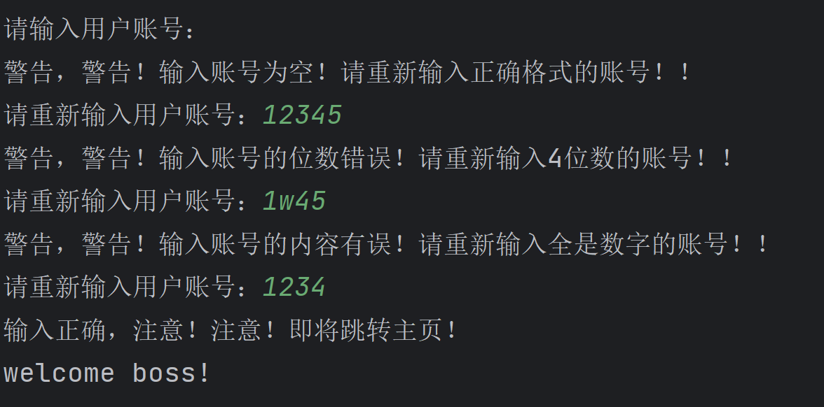 print("警告,警告!输入账号的位数错误!请重新输入4位数的账号!!")