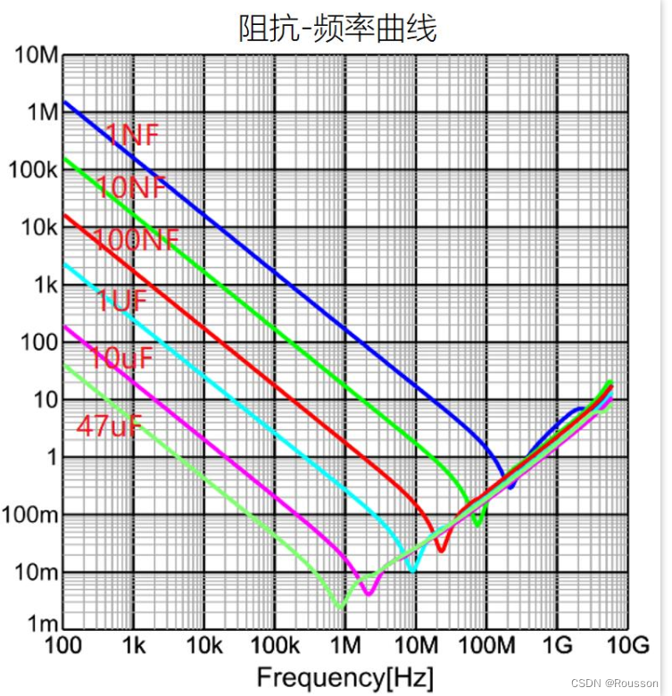 陶瓷电容的绝缘电阻非常大,是兆欧级别的,所以得简化公式为:Z=R+1/jwc+jwL。在频率较低时,电容主要呈容性,在频率比较高时,电容主要呈感性。而谐振的时候,阻抗等于等效串联电阻,此时阻抗达到最小值,如果用来滤波的话,此时效果最好。以下为普通村田电容的ESR表。