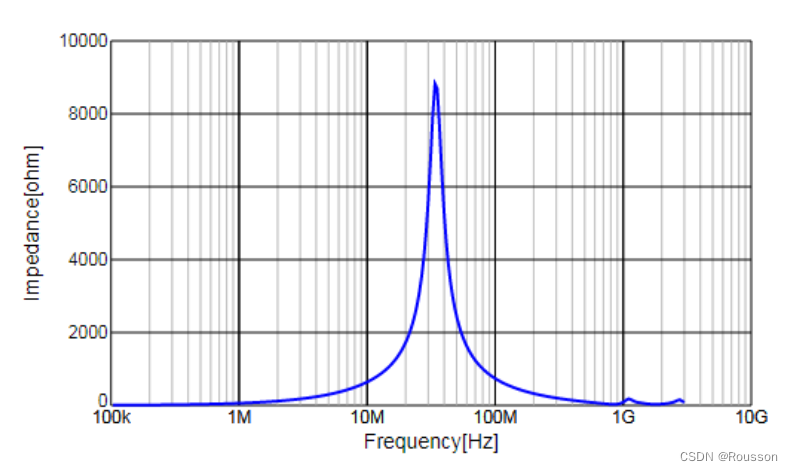 由于电感本身存在寄生电容,因此有自谐振点,并且是串联谐振,在谐振点处电感的阻抗最大。