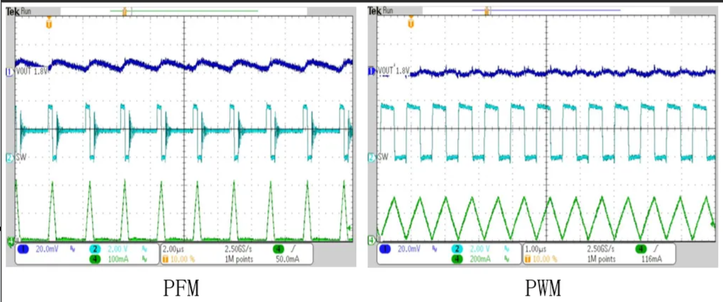 原理:重载时用PWM,轻载时自动切换为PFM,兼顾效率和性能。