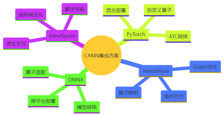 图3:CANN框架集成思维导图 - 展示CANN与各AI框架的集成方案