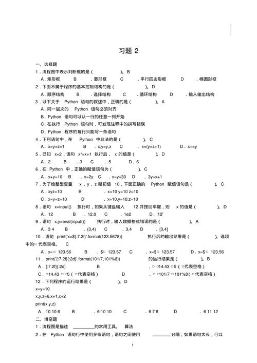 大家好,小编来为大家解答以下问题,python程序设计教程课后答案,python语言程序设计课后答案,今天让我们一起来看看吧! Source code download: 本文相关源码 浙江大学python程序设计(陈春晖、翁恺、季江民)习题答案 第一章 一、选择题 计算机存储器的单位使用字节(Byte,B),1B等于( C ) A.30 B.29 C.19 D.25片 2.Python程序的扩展名是( A ) A. py B.exe C.docx D. jpg 3.Python的输出函数是( B ) A. input B.print C.math D.turtle 4