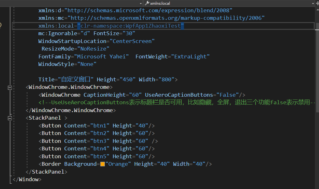 如果想要把占用标题栏的控件 可以点击或者触发,那么需要将IsHitTestVisibleInChrome设置为true