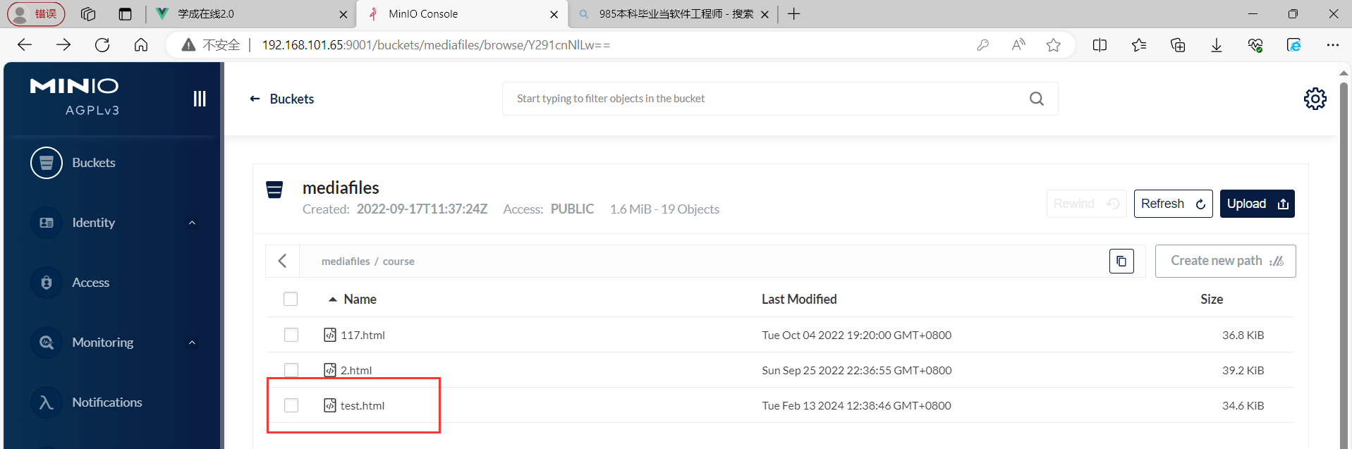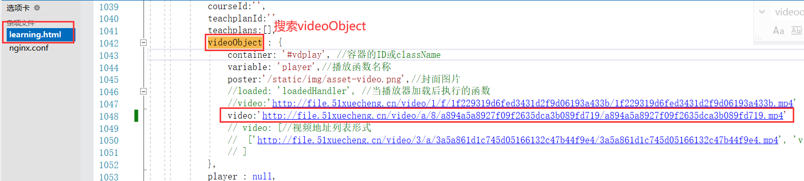 搜索videoObject,然后找到video对应的url链接,填写minio上视频的链接。
