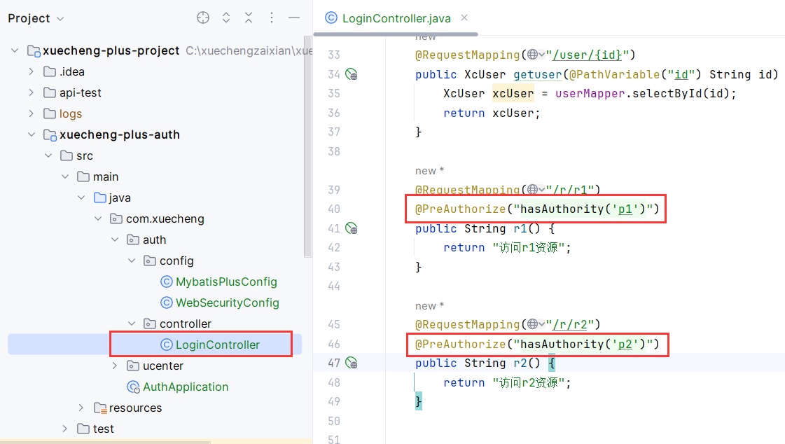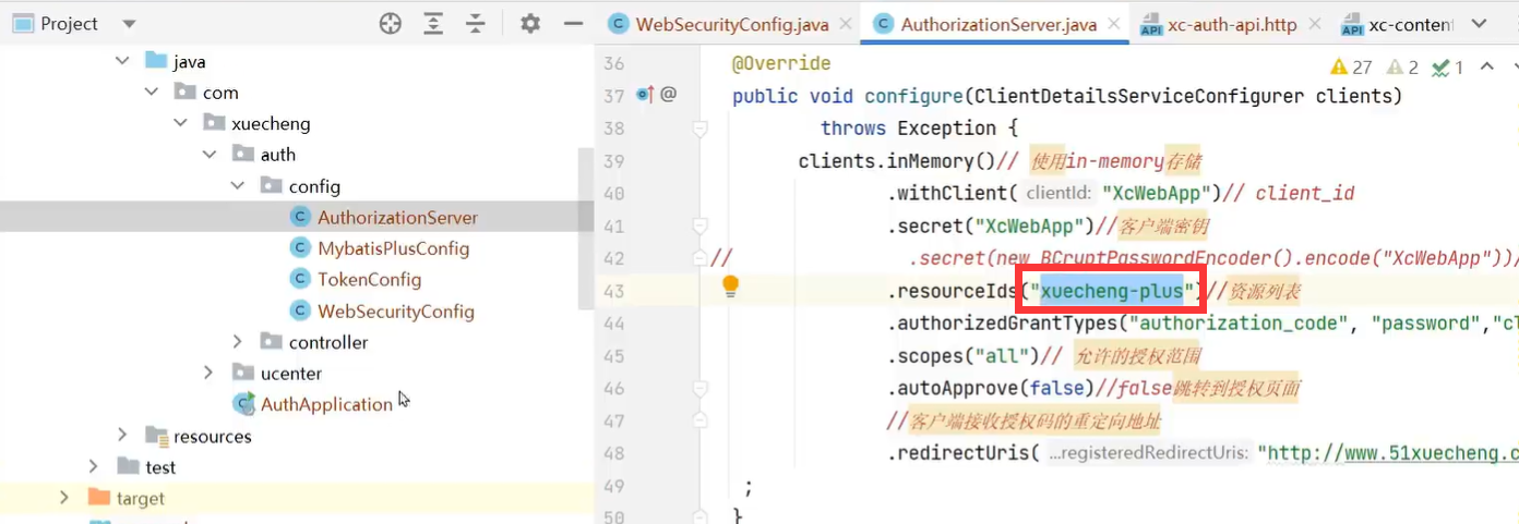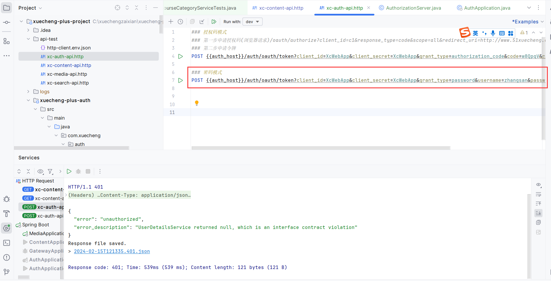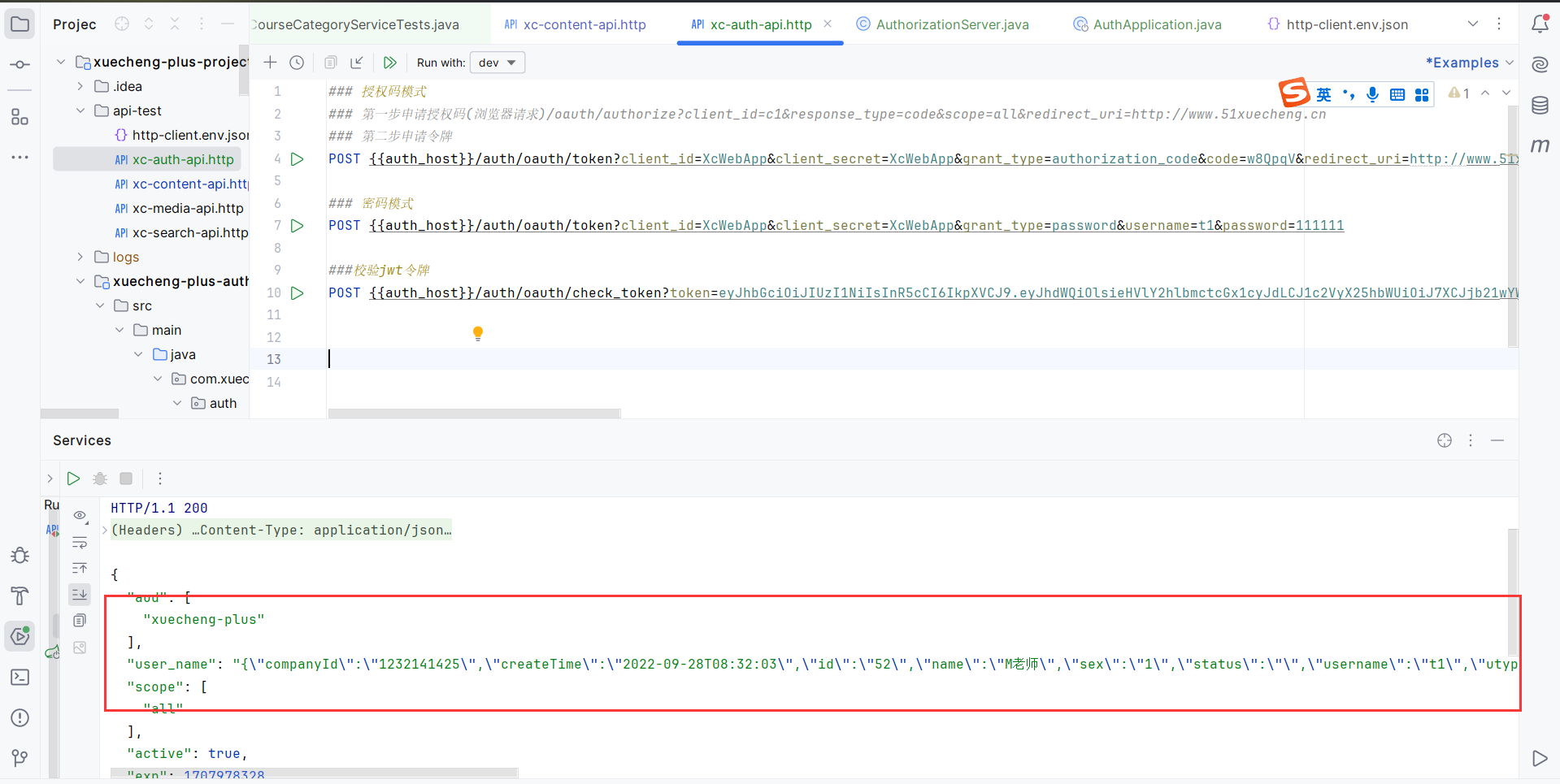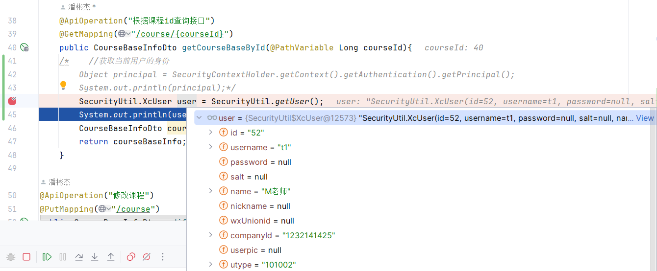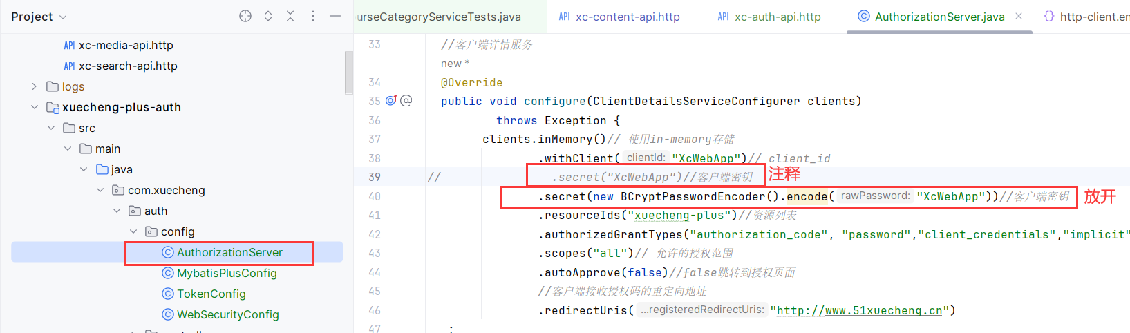 然后可以将xuecheng-plus-auth服务也断点启动,在如下位置打上断点: