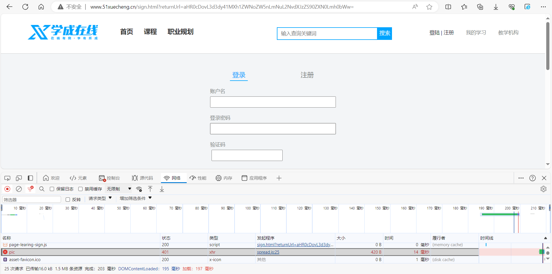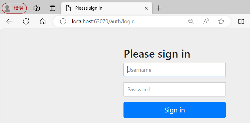 然后打开前端的登录页面,是401状态。可以到网关服务的security-whitelist.properties中临时把所有页面放行: