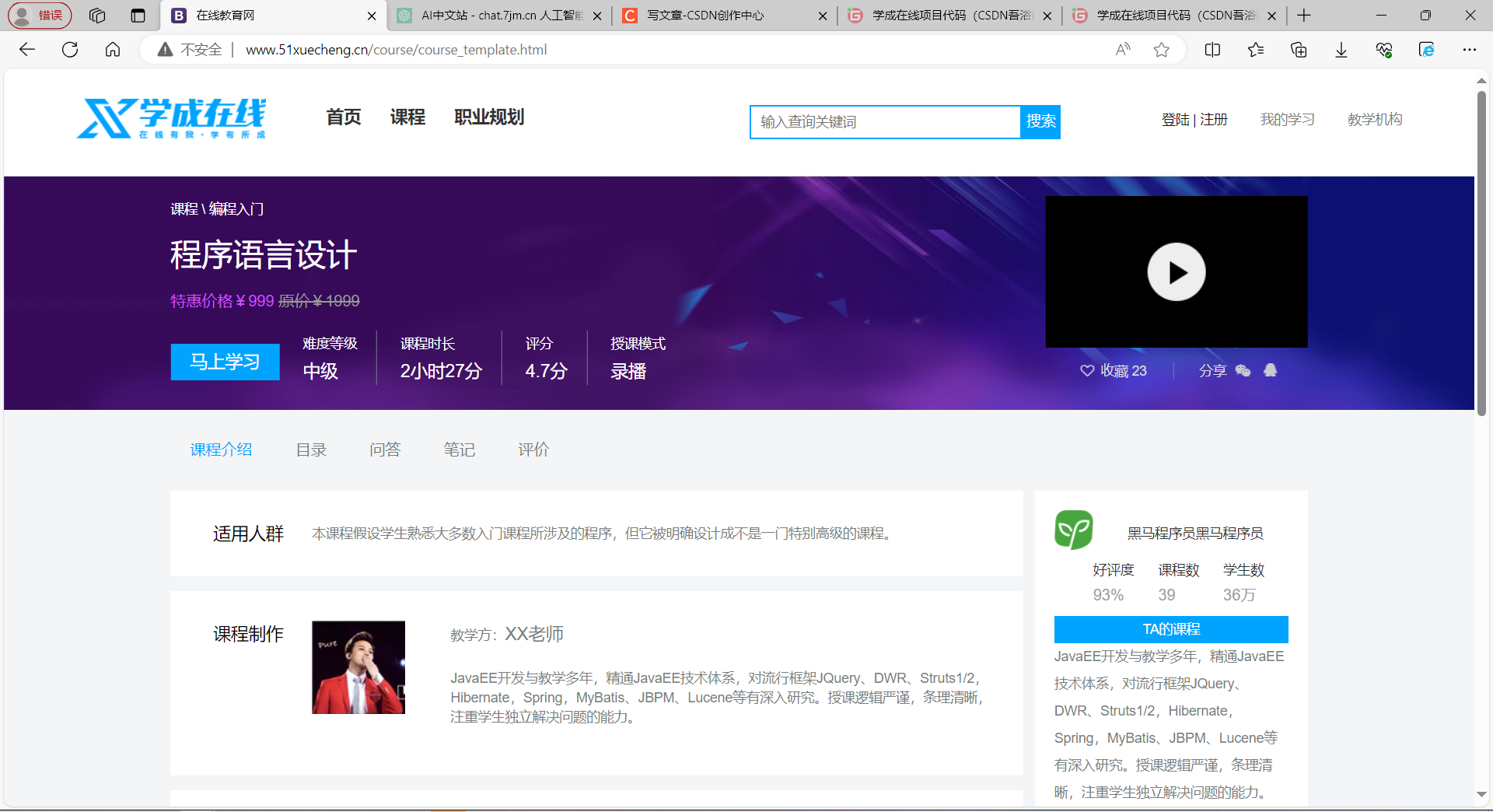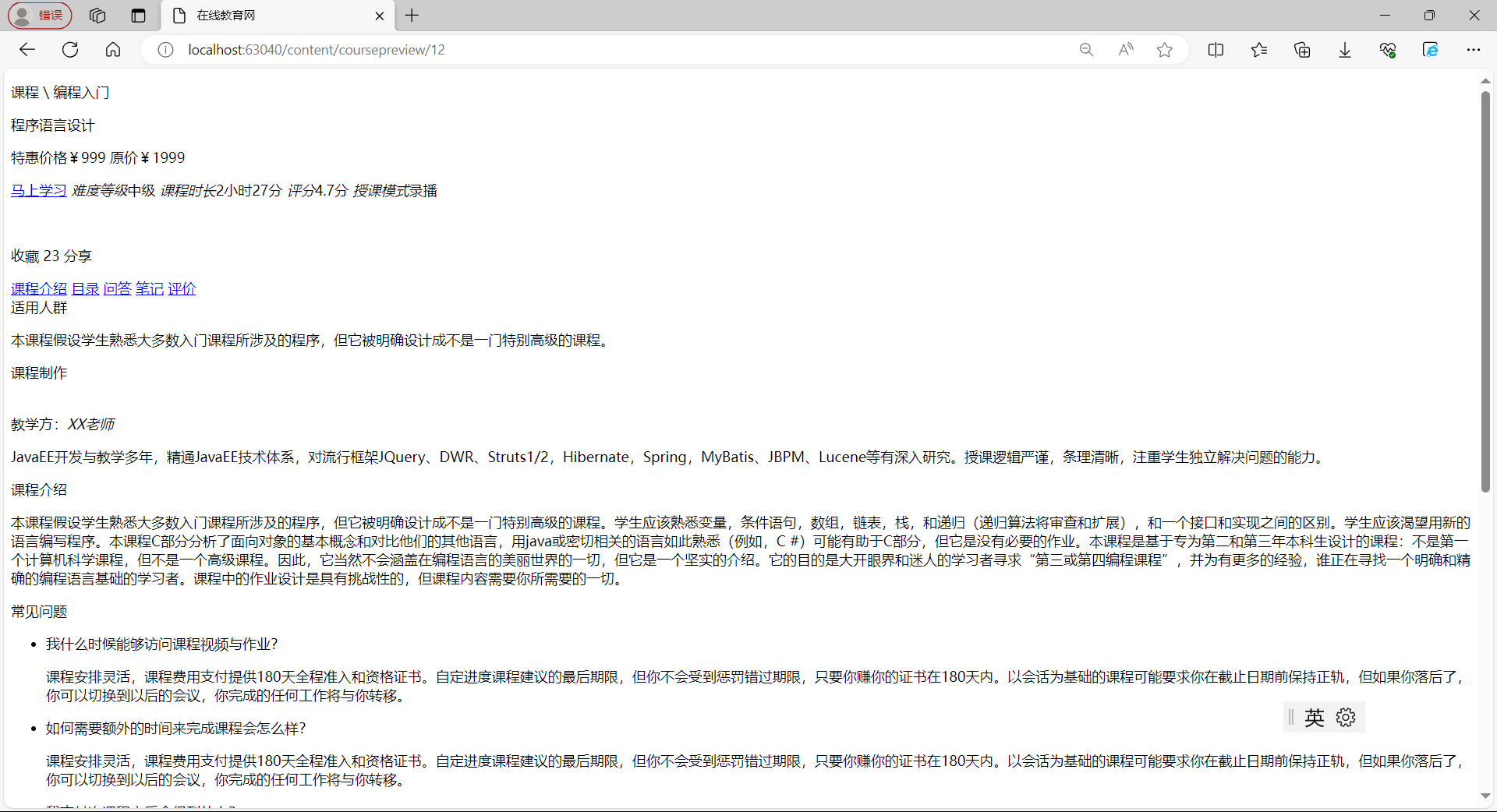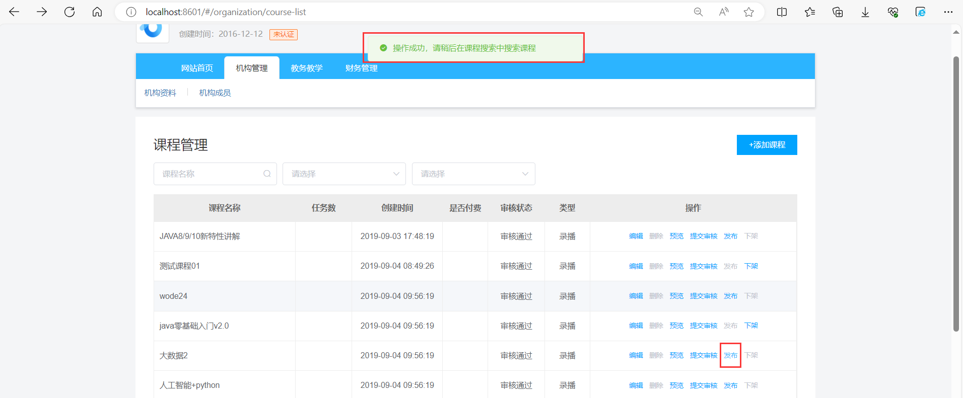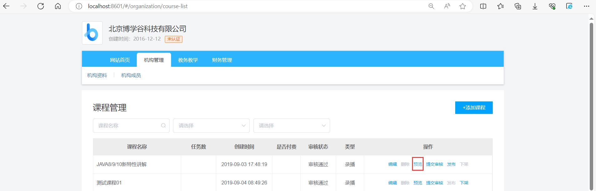 课程预览:在发布课程之前需要预览一下,看最终的效果有没有问题,课程信息是否完整。