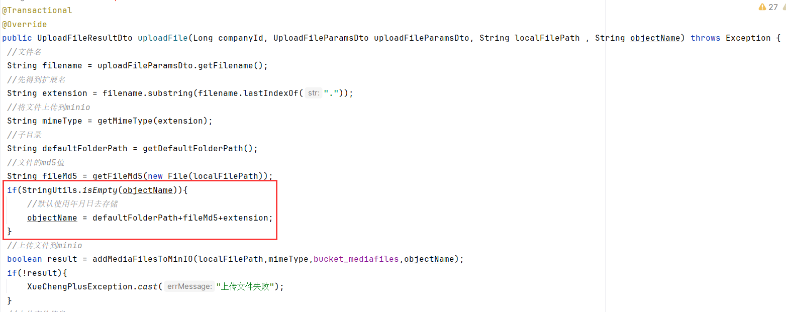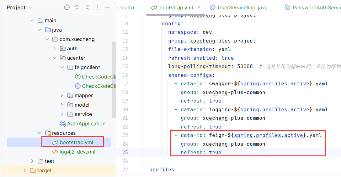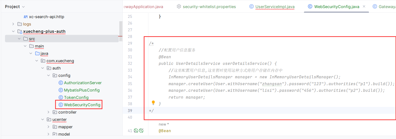 在xuecheng-plus-auth的service的impl下的UserServiceImpl中写入如下代码: