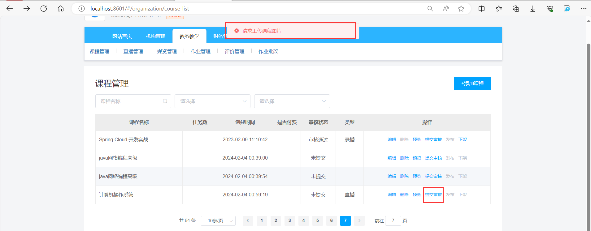 课程审核:预览之后就是运营人员进行审核,审核分为程序自动审核和人工审核。