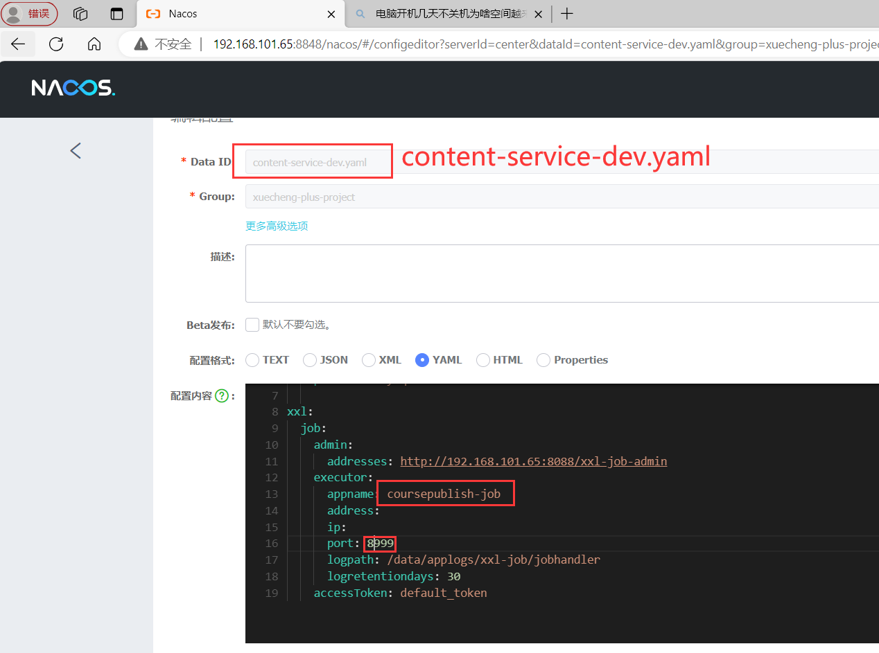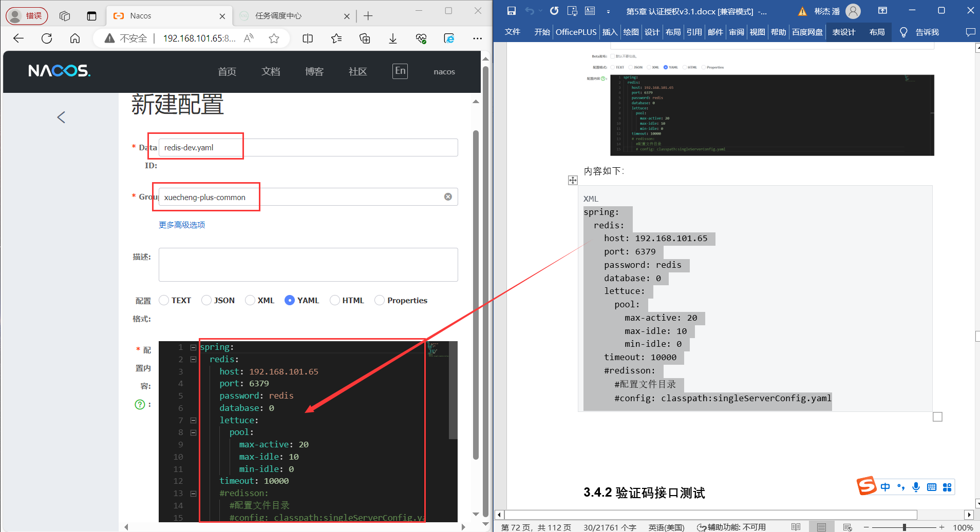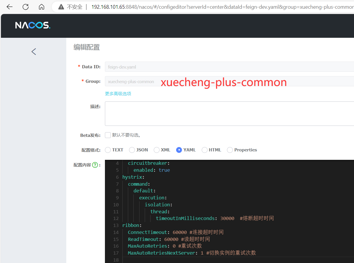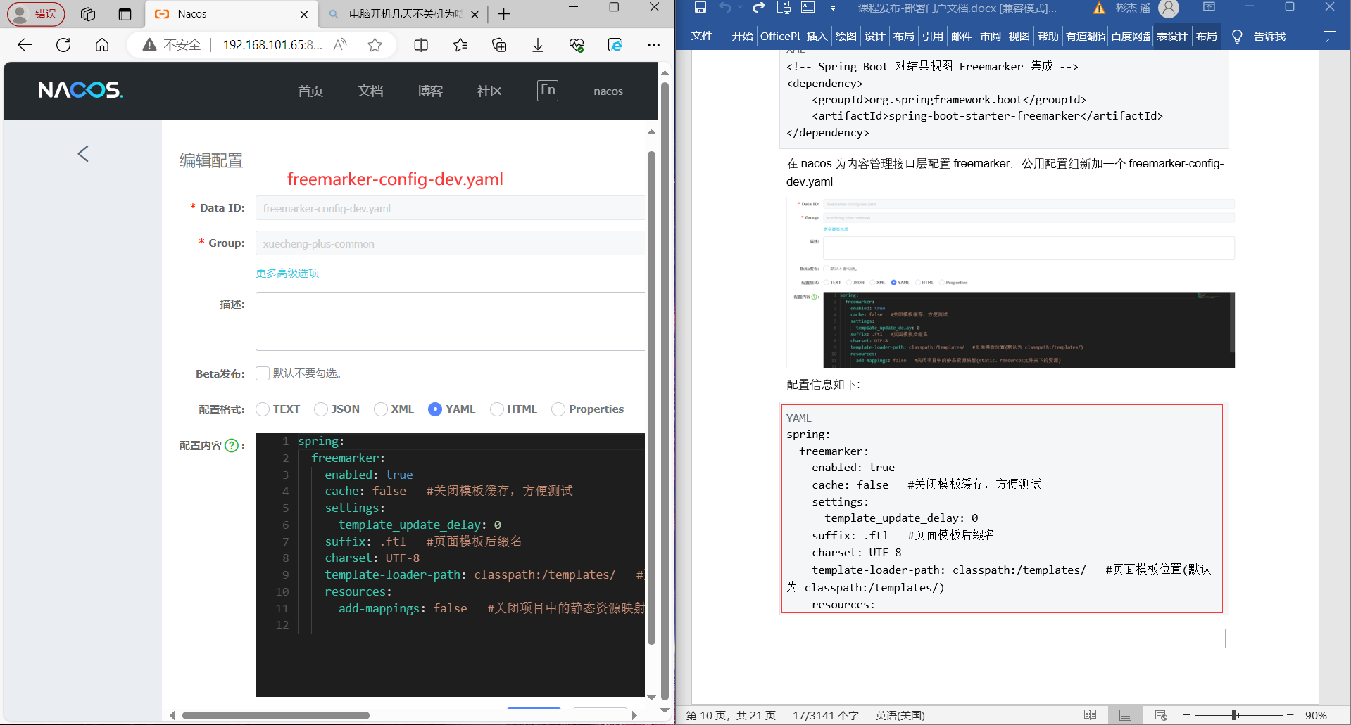 在nacos的freemarker-config-dev.yaml中写入如下代码: