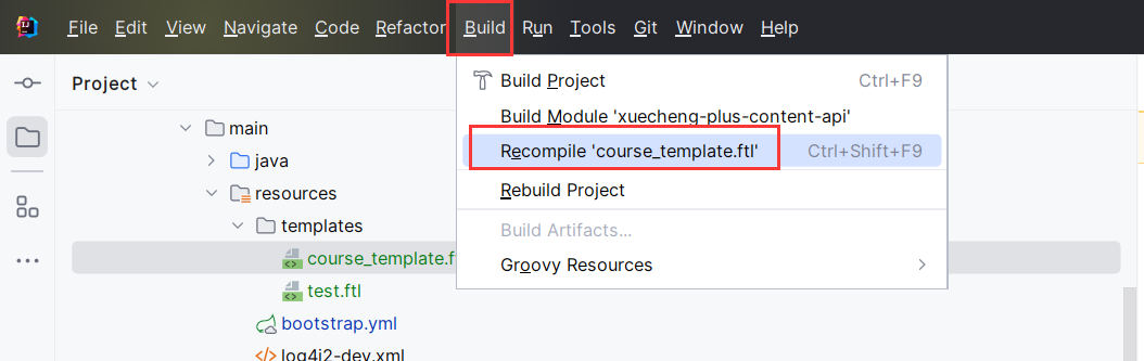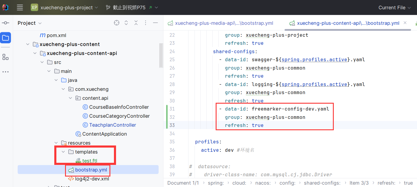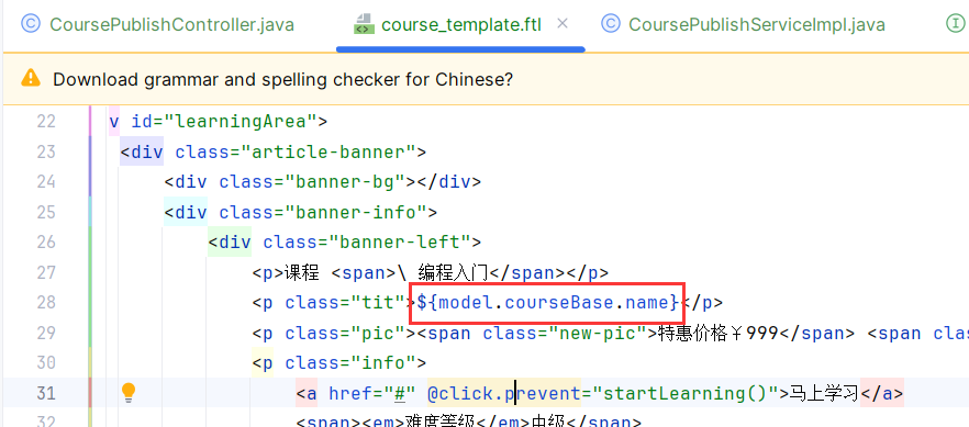 把course_template.html(这里面都是写死的数据)拷贝到xuecheng-plus-content-api的resources的templates下,改后缀名为course_template.ftl: