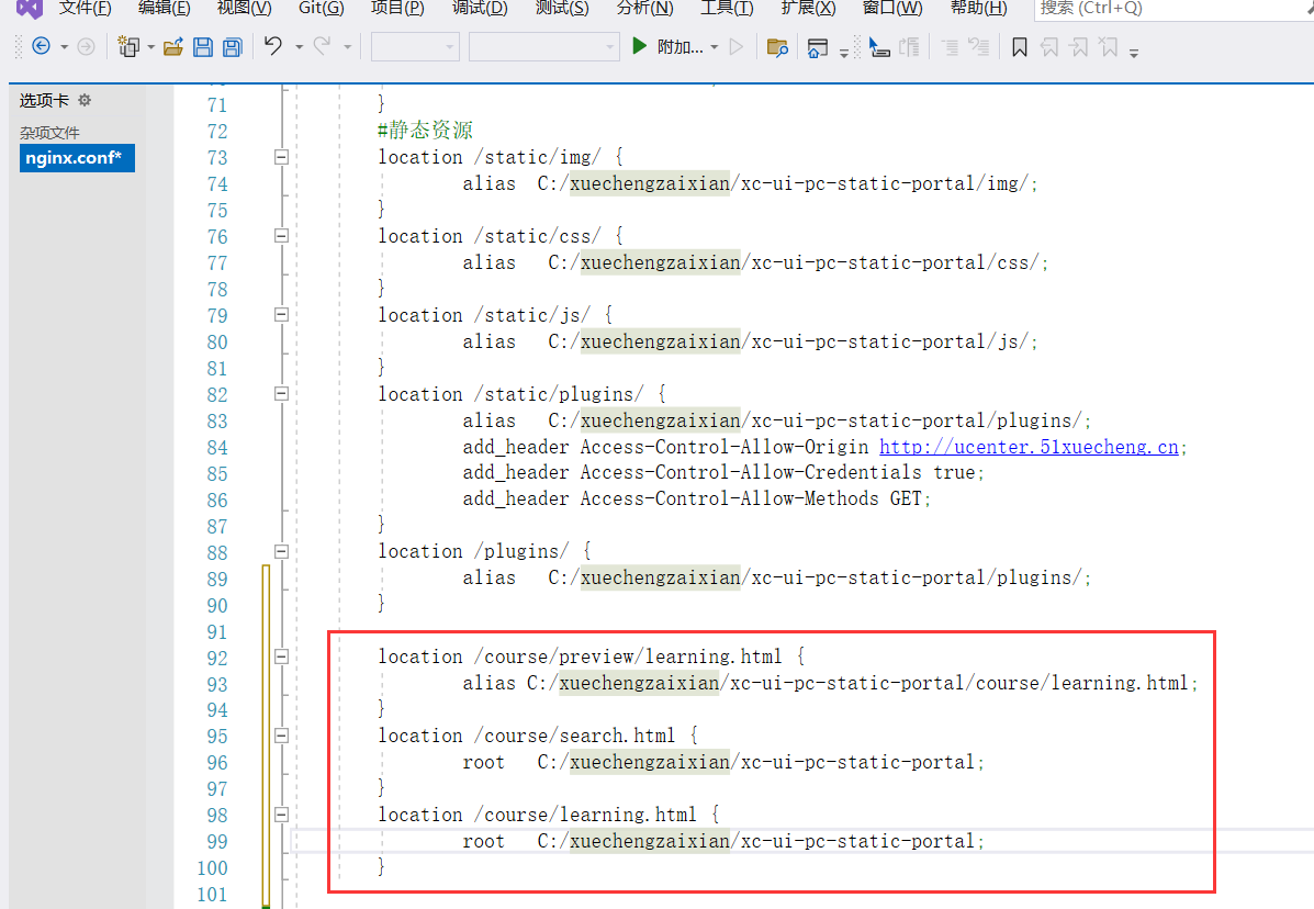 alias D:/itcast2022/xc_edu3.0/code_1/xc-ui-pc-static-portal/course/learning.html;