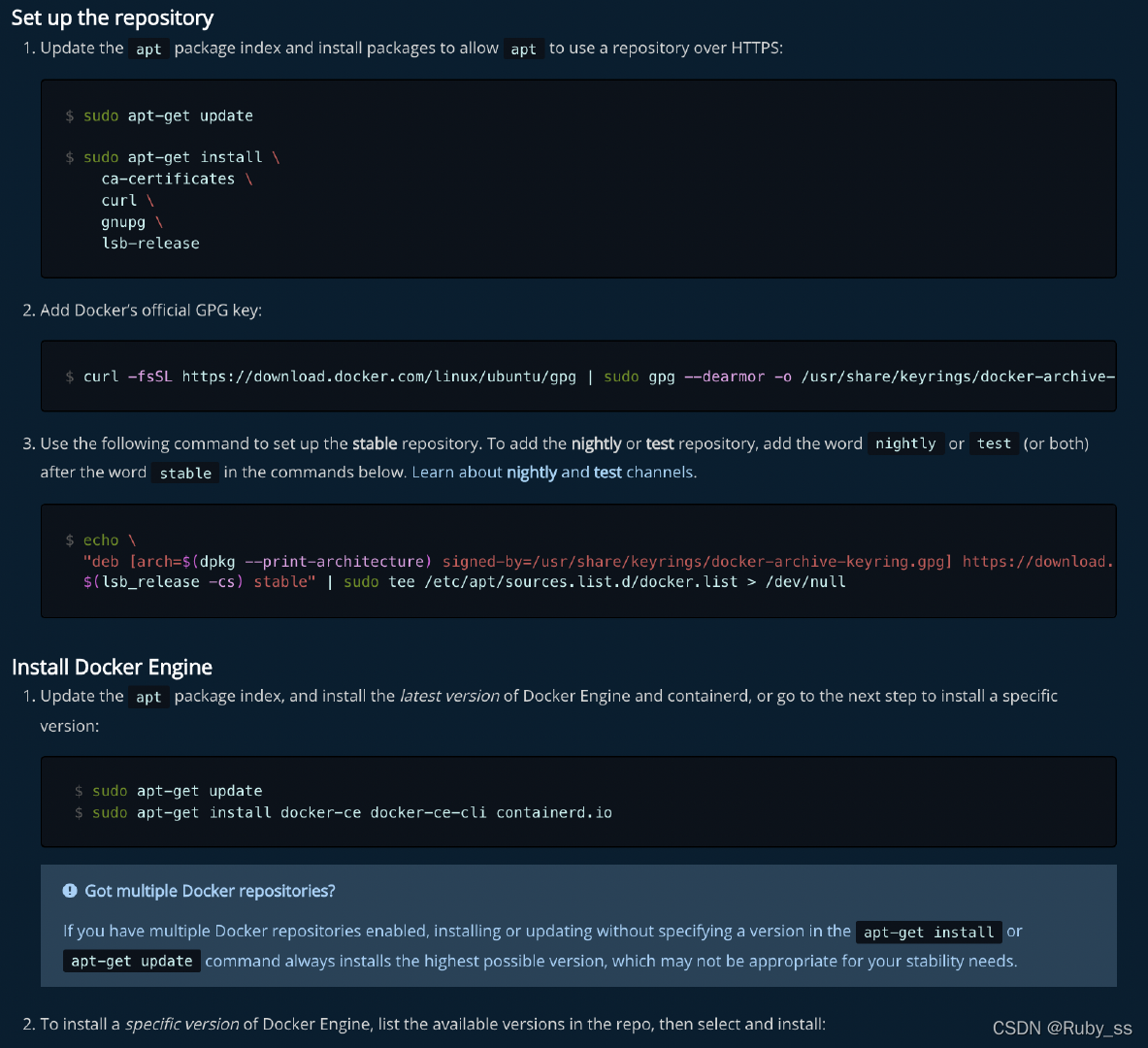 之后下滑页面找到Set up the respository ,可以看到一共有四步。