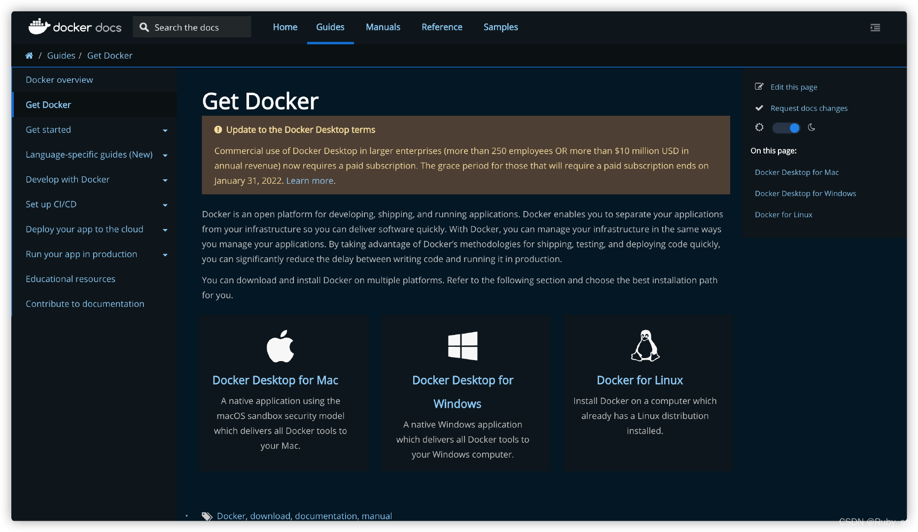 第一步我们需要到Docker官网(Docker Documentation | Docker Documentation上安装。