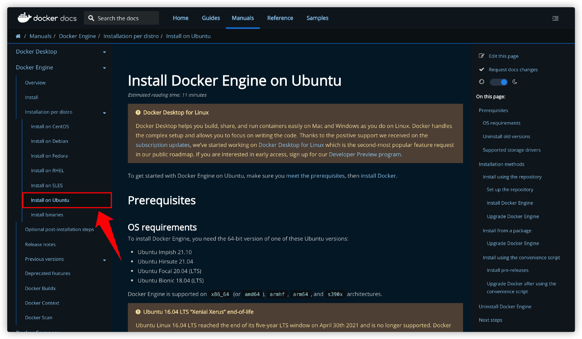 进入后,在左侧Install - Installation per distro中选择自己的操作系统安装。