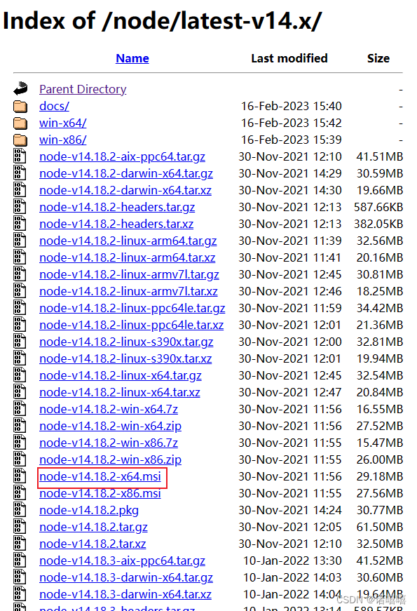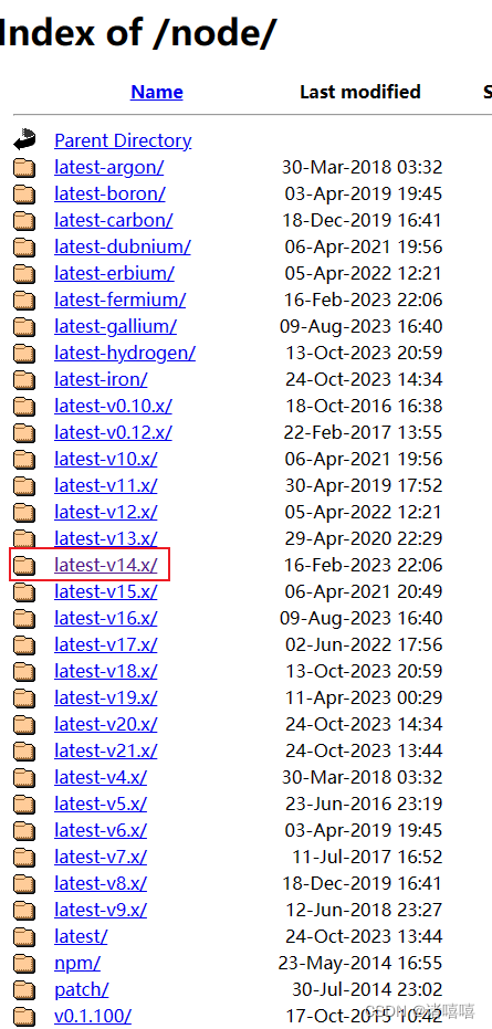 ● 根据自己的需要选择不同的版本,例如 需要14.x的版本则选择 latest-v14.x/,点击进入