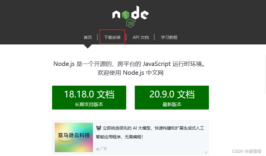 (安装nodejs,是为了nodejs中自带了npm管理工具)