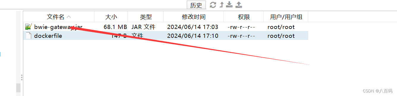 3.然后编写Dockerfile文件,与jar包放入同一个文件夹