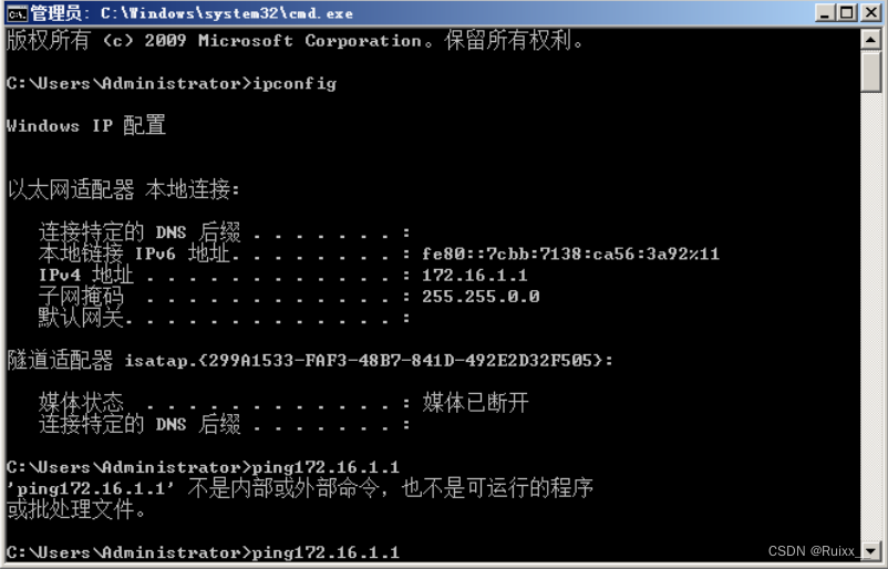 如:在弹出的命令行窗口输入ipconfig查看到试验机地址ping 172.16.1.1