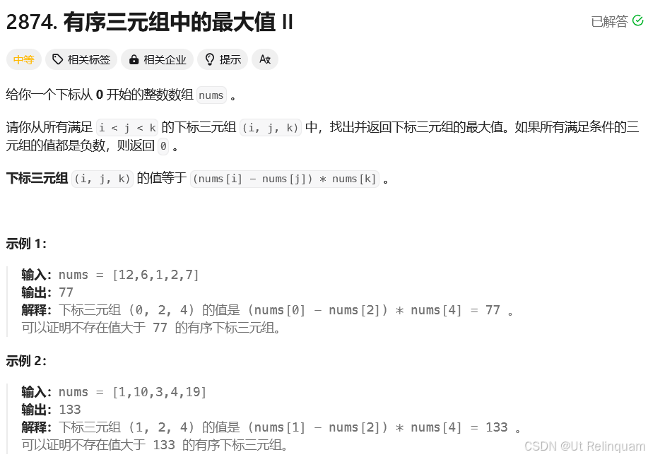 2874. 有序三元组中的最大值 II - 力扣(LeetCode)