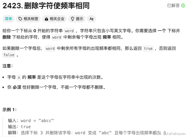 2423. 删除字符使频率相同 - 力扣(LeetCode)