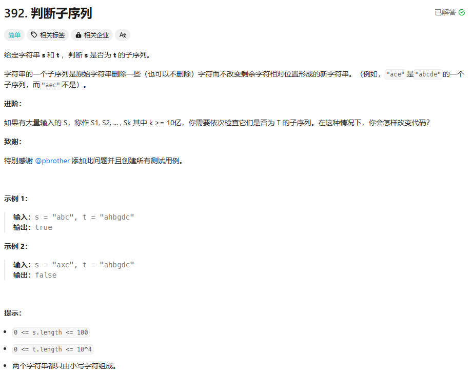 # 如果s的所有字符都被遍历完,则s是t的子序列