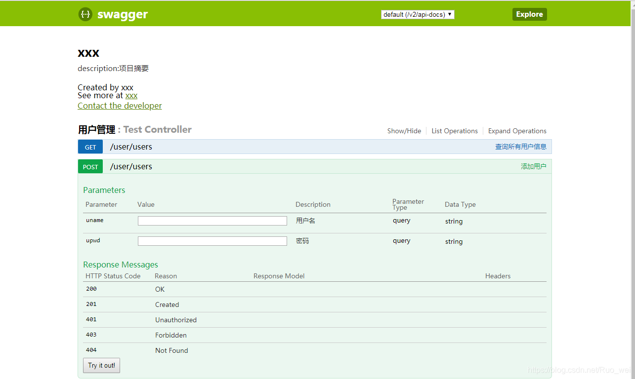 @ApiImplicitParam(name="uname",value="用户名",paramType="query"),