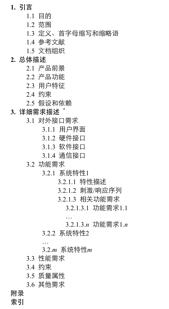 - 软件需求规格说明文档在软件产品的角度以系统级需求列表的方式描述软件系统解决方案