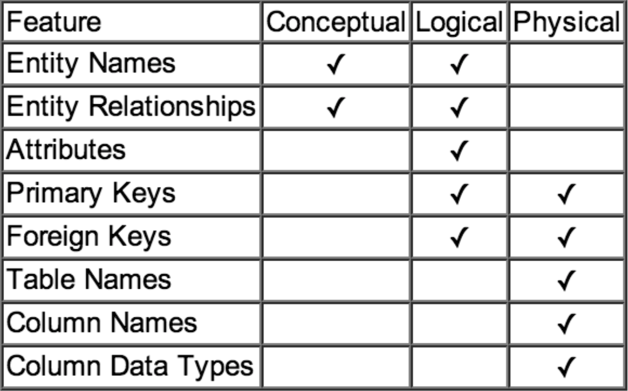 例如数据库设计就涉及概念模型、逻辑模型、物理模型